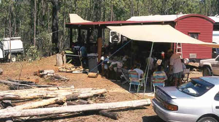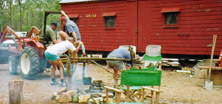 Railwy camp wagon used as a base camp by Bruce and his boys |