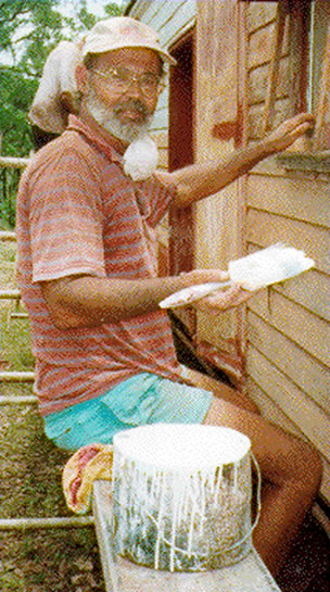 Acutt (RIP) sanding down the Railway Camp Wagon |